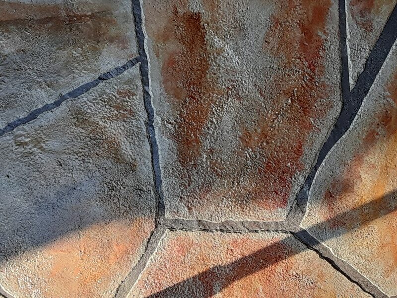 CAステンシル工法岩肌仕上げ完璧な施工ですが、コンクリート直仕上げ面の色ムラ発生気になります。CAアース工法ご検討ください。