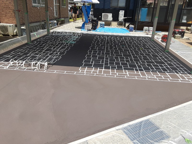 更にご近所に無いどや顔アート作品お創りの場合はCAスタンプ工法と組合せください。当方と連携施工で基礎基本習得ください。スタンプマット、各ツール持参いたします。後日の作業目地カラー施工、各シーラーは施工ください。※地域により提携出来ないエリアございます。