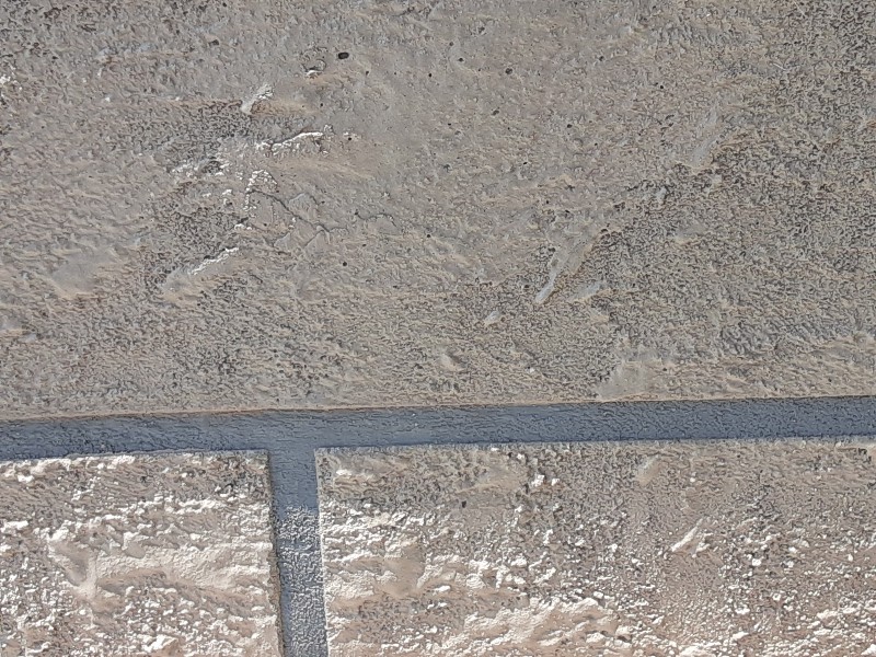 施工約一年のコンクリート直仕上げ面とCAステンシル工法レンガ仕上げのダメージ比較ください。