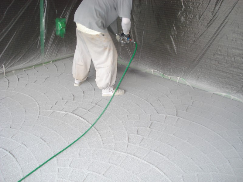 3.CAスタンプ工法ページでカラーハードナ散布時の飛散予防のスラリー工法ご覧くださいご近所の車など汚しません。