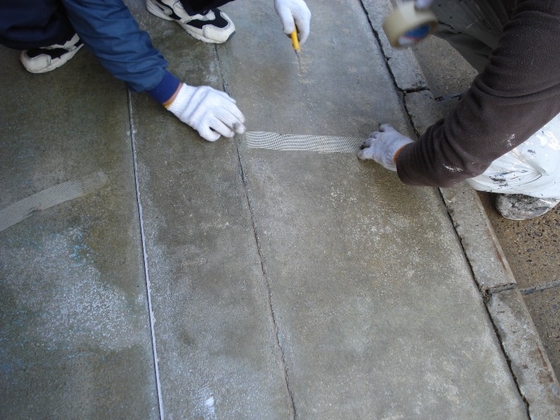 クラック部、凹み部ファイバーメッシュと防水モルタル良い仕事してるようです。